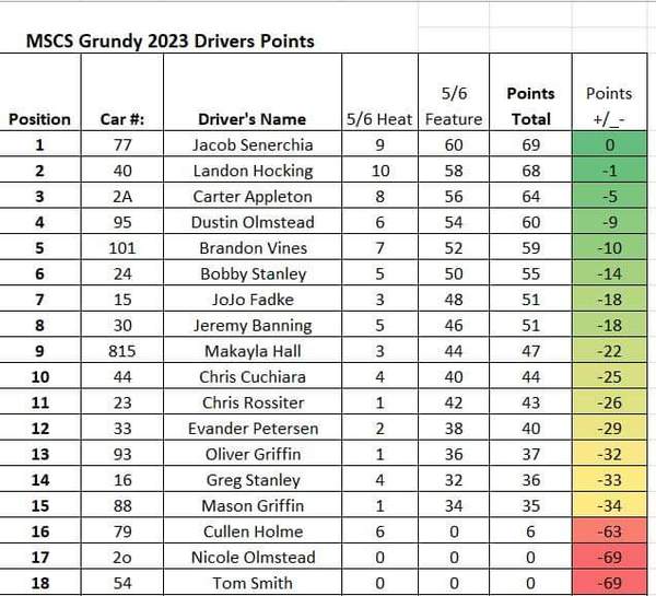 Top 5 in Grundy Super cup points after night 1. In 5th place back 10 points Brandon Vines, 4th place back 9 points Dustin Olmstead, 3 place back 5 points Carter Appleton, 2nd place back 1 point Landon Hocking, current points leader Jacob Senerchia.