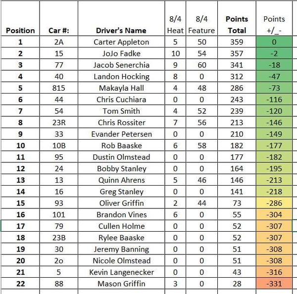 Here's the official 2023 MSCS Grundy County Speedway Points
