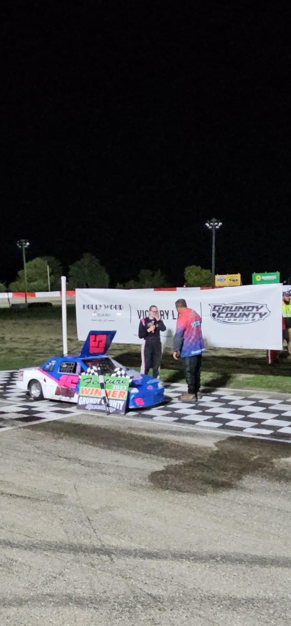 Congratulations to Jojo Fadke on her championship win at the Grundy County Speedway in the Midwest Super Cup Series! You did a great job all season. It was a hard fought battle and you were able to pull it off for your team. Thank you to D'Arcy Morris for their continued support. Huge thank you to our fans, friends, and families for allowing these drivers to do what they enjoy doing.